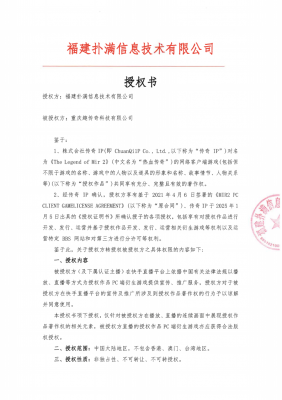 星空·综合体育信息技术有限公司注册地位于福建省福州市,是国内《热血传奇》客户端游戏独占性版权人。对《热血传奇》客户端游戏拥有全部版权,并有权基于版权权利进行该游戏维权。株式会社传奇IP (以下简称传奇IP )对《The Legend of Mir 2》(中文名为“热血传奇"、或“传奇”、“传奇2”、“MIR II”)游戏(以下称为 “授权作品”) 共同享有充分、完整且有效的著作权。经传奇IP授权 , RENAISSANCE INVESTMENT MANAGEMENT LIMITED (以下简称 RENAISSANCE Ltd.)有权在中国大陆地区独占性地对授权作品的网络客户端游戏进行开发、 发行、管理、宣传、推广和运营,针对授权作品的侵权游戏及侵权方,RENAISSANCE Ltd.有权采取必要的措施,并有权将前述权利分授权给第三人。星空·综合体育信息技术有限公司经RENAISSANCE Ltd.授权,获得上述权利,有权在中国大陆地区独占性地对授权作品的网络客户端游戏进行开发、发行、管理、宣传、推广和运营,并有权对侵权行为/主体采取维权措施。